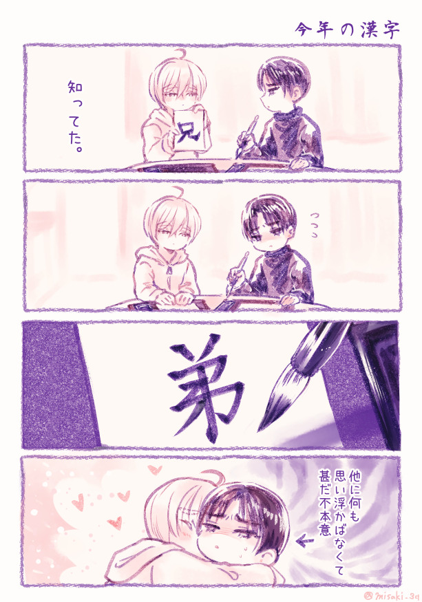 春植う兄の君 登場人物 守心 天晴(しゅしん あまはる) 守心 仁暁(しゅしん ひとあき) 森 季美 (もり ひでみ) 東雲 夕優奈(しののめ ゆうな) 守心 深哉 (しゅしん しんや) 登場人物をもっと見る ギャラリー おおよそ季節順。それ以外は ←新 旧→ 私が楽しい兄弟漫画+小ネタ 一枚絵 2024-03-072025-12-31Posted by 館長